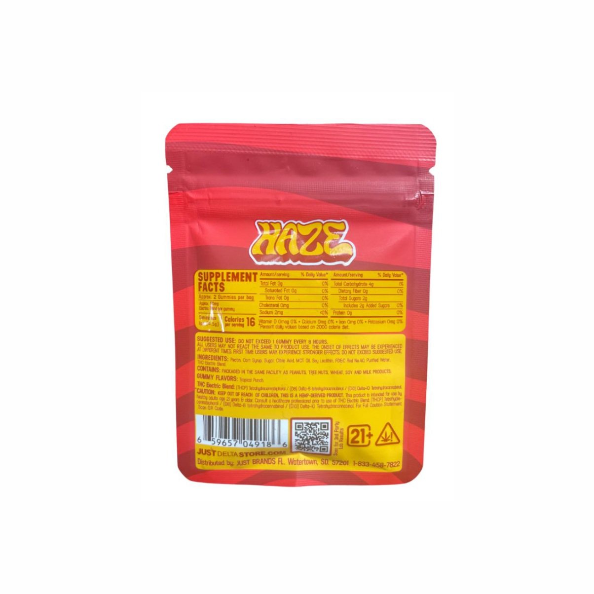 THC Electric Blend, jarabe de maíz, azúcar de caña, pectina, ácido cítrico, aromas naturales y artificiales, colorantes (rojo nº 40, rojo nº 3), aceite de girasol. THC Electric Blend: (THCH) Tetrahidrocannabihexol / (D8) Delta-8 tetrahidrocannabinol / (D10) Delta-10 Tetrahidrocannabinol.